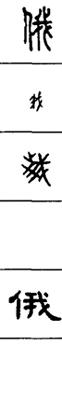从上到下依次是小篆、甲骨文、金文、古玺及战国文字、缪篆及汉代文字、鸟虫篆。