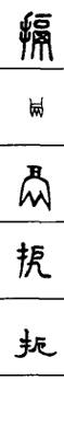 从上到下依次是小篆、甲骨文、金文、古玺及战国文字、缪篆及汉代文字、鸟虫篆。