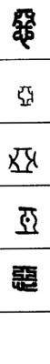 从上到下依次是小篆、甲骨文、金文、古玺及战国文字、缪篆及汉代文字、鸟虫篆。