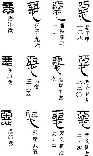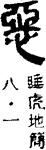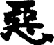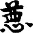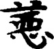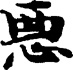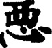 S.6825V想爾注《老子道經》卷上:“不通道,好爲惡事,奈何?”又:“志爲惡氣,去骨枯弱。”按:此形爲“德”字手書右半,除去字形訛變因素外,似乎還有一點會意在內(“德”去“人”爲“惡”)。此形主要存於早期寫本。裘錫圭先生《文字學概要》(商务印书馆1988年8月第1版)第七章《表意字》下《表意字分類舉例》之六《變體字》:“‘
