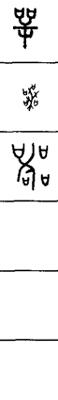 从上到下依次是小篆、甲骨文、金文、古玺及战国文字、缪篆及汉代文字、鸟虫篆。