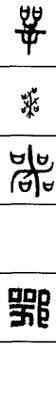 从上到下依次是小篆、甲骨文、金文、古玺及战国文字、缪篆及汉代文字、鸟虫篆。