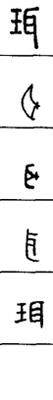 从上到下依次是小篆、甲骨文、金文、古玺及战国文字、缪篆及汉代文字、鸟虫篆。