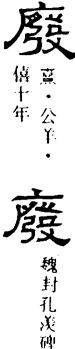 馬王堆帛書《六十四卦·蒙》初六:“廢蒙,利用刑人,用説桎梏,已(以),往閵(吝)。”廢通行本《易》作發。又帛書《戰國縱横家書·蘇秦獻書趙王章》:“史(使)秦廢令,疎服而聽,反(返)温、軹、高平於魏,反王公,符逾於趙,此天下所明知也。”《戰國策·趙策一》作:“使秦發令素服而聽……”影本注説廢為正字,“廢令”即“廢去稱帝的令”。但文中未提秦稱帝之事,故其説恐非。應以《策》文為是,乃齊迫使秦發令退還侵佔之地。按《史記·扁鵲倉公列傳》:“破陰絶陽之色已廢。”集解引徐廣曰:“廢一作發。”