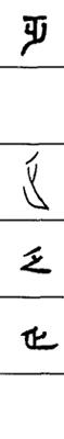 从上到下依次是小篆、甲骨文、金文、古玺及战国文字、缪篆及汉代文字、鸟虫篆。