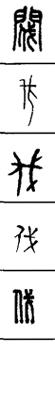 从上到下依次是小篆、甲骨文、金文、古玺及战国文字、缪篆及汉代文字、鸟虫篆。