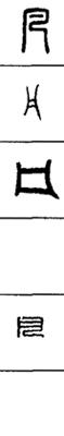 从上到下依次是小篆、甲骨文、金文、古玺及战国文字、缪篆及汉代文字、鸟虫篆。