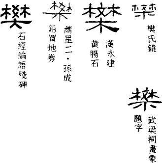 〈辨〉樊字篆书从癶从棥、棥亦声,癶读pān,象两手相背,象示攀援的意思;棥读fán,从爻从林会意,原为樊篱的本字,象示树木,为攀援的对象;樊字本义为攀援、攀登,后来借樊作棥,另造攀字。