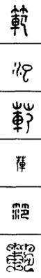 从上到下依次是小篆、甲骨文、金文、古玺及战国文字、缪篆及汉代文字、鸟虫篆。