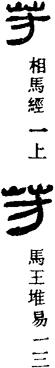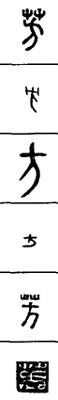 从上到下依次是小篆、甲骨文、金文、古玺及战国文字、缪篆及汉代文字、鸟虫篆。