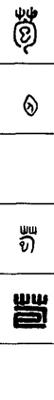 从上到下依次是小篆、甲骨文、金文、古玺及战国文字、缪篆及汉代文字、鸟虫篆。