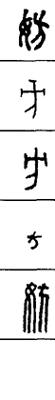 从上到下依次是小篆、甲骨文、金文、古玺及战国文字、缪篆及汉代文字、鸟虫篆。