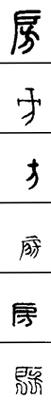 从上到下依次是小篆、甲骨文、金文、古玺及战国文字、缪篆及汉代文字、鸟虫篆。