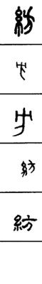 从上到下依次是小篆、甲骨文、金文、古玺及战国文字、缪篆及汉代文字、鸟虫篆。