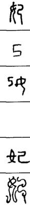 从上到下依次是小篆、甲骨文、金文、古玺及战国文字、缪篆及汉代文字、鸟虫篆。