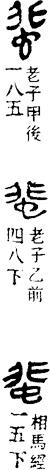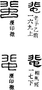 从上到下依次是小篆、甲骨文、金文、古玺及战国文字、缪篆及汉代文字、鸟虫篆。