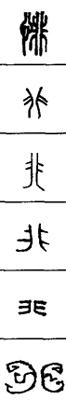 从上到下依次是小篆、甲骨文、金文、古玺及战国文字、缪篆及汉代文字、鸟虫篆。