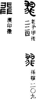 从上到下依次是小篆、甲骨文、金文、古玺及战国文字、缪篆及汉代文字、鸟虫篆。