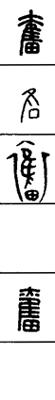 从上到下依次是小篆、甲骨文、金文、古玺及战国文字、缪篆及汉代文字、鸟虫篆。