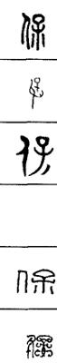 从上到下依次是小篆、甲骨文、金文、古玺及战国文字、缪篆及汉代文字、鸟虫篆。