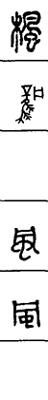 从上到下依次是小篆、甲骨文、金文、古玺及战国文字、缪篆及汉代文字、鸟虫篆。