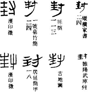 甲骨文、金文的封字,象植树于土堆之上或用手培土植树的样子,其本义为培土植树,又有聚土成坟的意思,引申为堆、冢之义。古人封土植树的目的是为了划分田界和疆域,所以封字还有疆界、界域之义。古代帝王把土地或爵位赐给臣子就叫做封,而诸侯或大夫所分得的土地就称为封地、封邑。封字由疆界之义又可引申为密闭、拘限之义,如封闭、封锁、查封等。