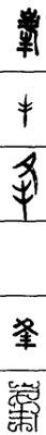 从上到下依次是小篆、甲骨文、金文、古玺及战国文字、缪篆及汉代文字、鸟虫篆。