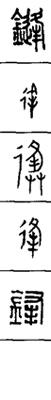 从上到下依次是小篆、甲骨文、金文、古玺及战国文字、缪篆及汉代文字、鸟虫篆。
