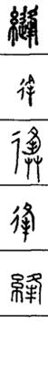 从上到下依次是小篆、甲骨文、金文、古玺及战国文字、缪篆及汉代文字、鸟虫篆。