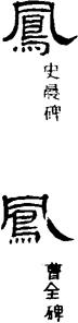 凤是传说中的瑞鸟,是鸟中之王。甲骨文的凤字,象一只长尾巴的鸟形。此鸟头上有冠,尾羽上有彩色耀人的眼形,其实就是孔雀的形象;有的凤字还在鸟形上加上声符“凡”表示读音,所以它又是一个从鸟凡声的形声字。因为凤是人们心目中的神瑞之物,所以凡与凤有关系的事物都具有美好、祥瑞的含义,如称盛德为“凤德”,称美丽的文辞为“凤藻”,称文才荟萃之地为“凤穴”,而皇帝或仙人所乘之车为“凤车”,皇帝居住的京城叫“凤城”等。