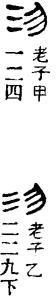 馬王堆帛書《老子》乙本《道經》:“沕呵其若海,望(恍)呵若无所止。”“道之物,唯望唯沕。沕呵望呵,中又(有)象呵。望呵沕呵,中有物呵。”沕通行本皆作忽。他本亦作惚。