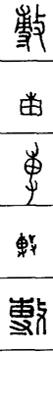 从上到下依次是小篆、甲骨文、金文、古玺及战国文字、缪篆及汉代文字、鸟虫篆。