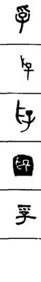 从上到下依次是小篆、甲骨文、金文、古玺及战国文字、缪篆及汉代文字、鸟虫篆。
