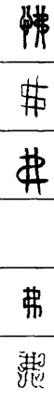 从上到下依次是小篆、甲骨文、金文、古玺及战国文字、缪篆及汉代文字、鸟虫篆。