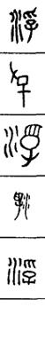 从上到下依次是小篆、甲骨文、金文、古玺及战国文字、缪篆及汉代文字、鸟虫篆。