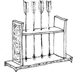 甲骨文、金文的箙本是一个会意字,象一个插箭的架子,上面倒插着箭矢的形状。它的本义即指盛箭的用具。小篆的箙字变成从竹服声的形声字。之所以从竹,是因为箭架多用竹木做成。