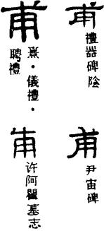 〈辨〉甫字甲骨文象田中有菜苗之形,本为圃字初文,用为地名或人名。金文有两体,一体同甲骨文,一体讹变作从用父声,借用为父,用为男子美称。篆书略同金文后一体,楷书作甫。◇注意:统读fǔ,不读pǔ。