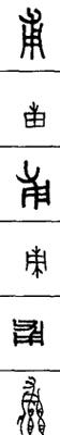 从上到下依次是小篆、甲骨文、金文、古玺及战国文字、缪篆及汉代文字、鸟虫篆。