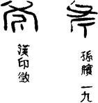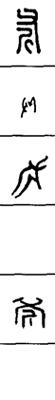 从上到下依次是小篆、甲骨文、金文、古玺及战国文字、缪篆及汉代文字、鸟虫篆。