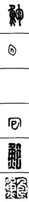 从上到下依次是小篆、甲骨文、金文、古玺及战国文字、缪篆及汉代文字、鸟虫篆。
