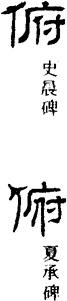 〈辨〉俯字本作頫,从頁从逃省,会意,頁指人的头,人逃跑时因羞愧自会低头。或作俛,从人免声。俯字本从免声,后来读音变化,改从府字。俯字金文已有,用为人名字。