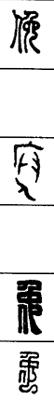 从上到下依次是小篆、甲骨文、金文、古玺及战国文字、缪篆及汉代文字、鸟虫篆。
