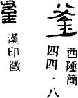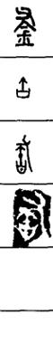 从上到下依次是小篆、甲骨文、金文、古玺及战国文字、缪篆及汉代文字、鸟虫篆。