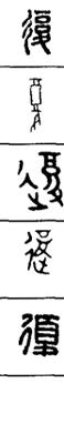 从上到下依次是小篆、甲骨文、金文、古玺及战国文字、缪篆及汉代文字、鸟虫篆。