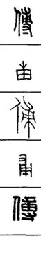 从上到下依次是小篆、甲骨文、金文、古玺及战国文字、缪篆及汉代文字、鸟虫篆。