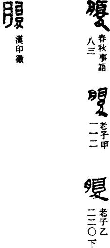 馬王堆帛書《老子》甲本卷後古佚書《五行》:“終(充)其不莊(藏)尤割(害)人之心,而仁腹天下。”影本注以為腹讀為覆。《孟子·盡心下》:“人能充無欲害人之心而仁不可勝用也。”又同書《離婁》:“聖人……既竭心思焉,繼之以不忍人之政而仁覆天下矣。”按《晏子春秋·内篇·問上》:“則為人主所案據腹而引之。”《韓詩外傳》七腹作覆。