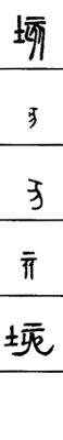 从上到下依次是小篆、甲骨文、金文、古玺及战国文字、缪篆及汉代文字、鸟虫篆。