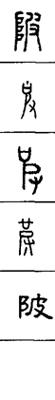 从上到下依次是小篆、甲骨文、金文、古玺及战国文字、缪篆及汉代文字、鸟虫篆。