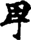 ,形符从阜;阜高田低,所以卑字形符从田。篆书形体讹变,楷书作卑,不可分析。
