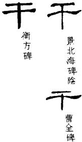 漢·《北海相景君銘碑陰》:故干淳于董純字元祖。〔洪适《隸續》云:案《百官志》載:郡縣吏屬,自曹掾之下有書佐,有循行,有幹,有小史,此碑“故午”六人在循行小史之間。隸文幹字其旁從
